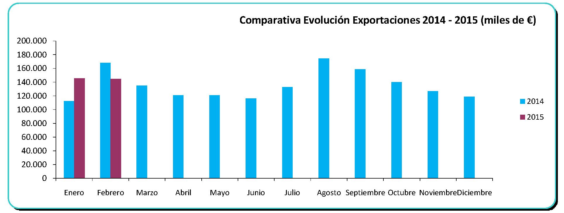Haciendo balance de las exportaciones realizadas en los dos primeros meses de 2015, de los que se tienen datos hasta la fecha, la provincia de Málaga ha exportado por valor de 290 millones de euros, casi 10 millones de euros más que el mismo periodo de 2014.