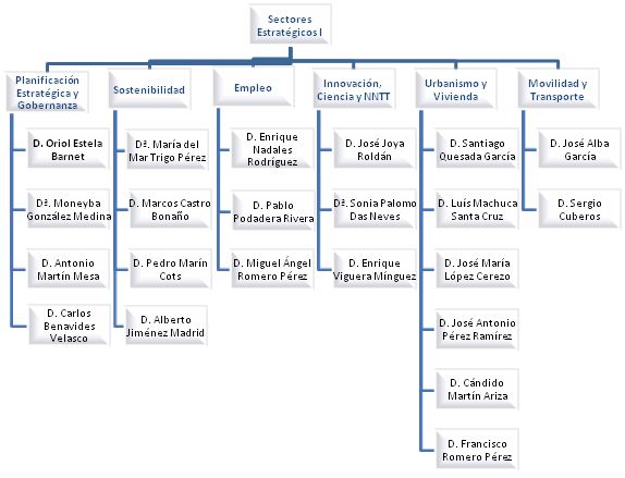 El Comité Consultor se configura como un espacio de conocimiento en el que interactúan la Universidad, la Empresa y la Administración en los distintos sectores estratégicos para la provincia de Málaga, integrados por los siguientes miembros: